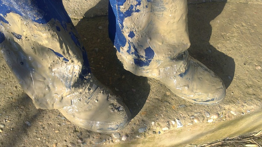 Фотографируя джинсы в грязи почти по колено надо помнить что жижа при погружении в нее предмета (В данном случае ног в джинсах)к нашему ужасу из-за своих физических свойств нагло обволакивает всю окружность по диаметру сверху донизу. Даже если пытаешься идти как балерина на пальчиках, эта гнусь забирается сзади под пятки, под штанины)))) НУ подлая она такая!