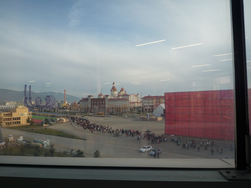 Появилось время быстренько написать о нашем посещении Чемпионата России по фигурному катанию 26. 12.2013 г. Самой надоели эти жалобы и стенания по поводу Олимпийского Сочи, но пусть этот пост будет предупреждением для тех, кто не был еще на соревнованиях. Билеты достались бесплатно от работы. Довезли нас на бесплатном автобусе до Олимпийского парка. Была в Айсберге год назад, хотелось посмотреть, что изменилось за год. Вместе с сотрудницей сразу отправились на вокзал купить билеты на ласточку, т.к. планировали уехать раньше окончания соревнования.