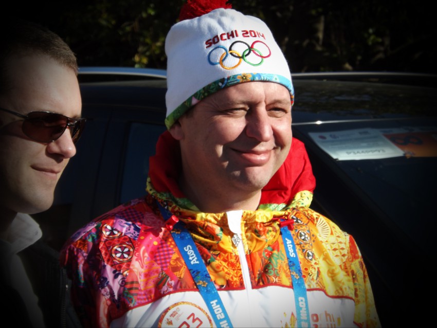 Эстафету огня смотреть не планировали, но выйдя к ротонде, увидели, что огонь нас догнал)