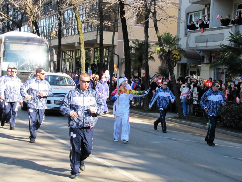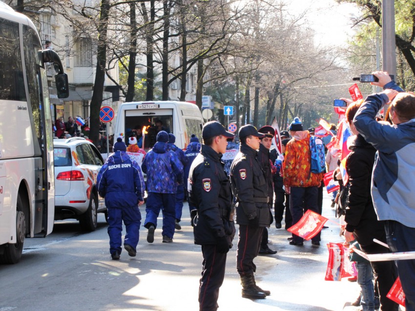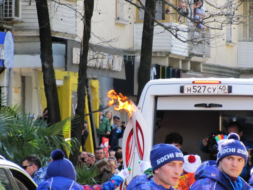 На улице Конституции у Поликлиники №1 снял момент передачи огня.