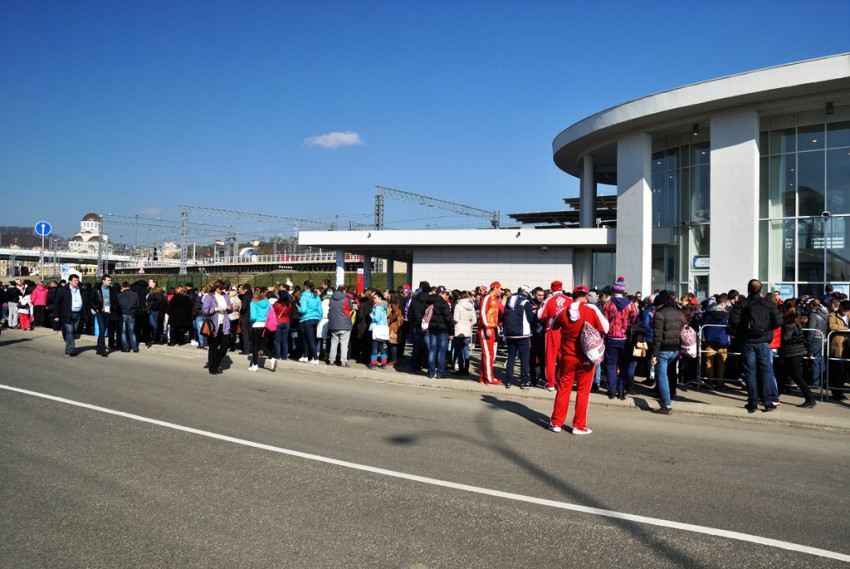 В субботу решил побывать в Олимпийском парке, просто так разведать обстановку, для этой цели был куплен билет за 200р на 14:00. Приехали пораньше, часов в 12, но до обозначенного времени попасть в парк не удалось, пришлось ждать. Очень хотелось есть, но не одного магазина я в округе не увидел, ну что ж потерпим.