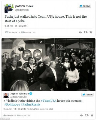 Вчера к команде США зашел. Спортсмены сразу сотнями твитов разразились на тему «Вы не поверите, кто к нам пришел!»