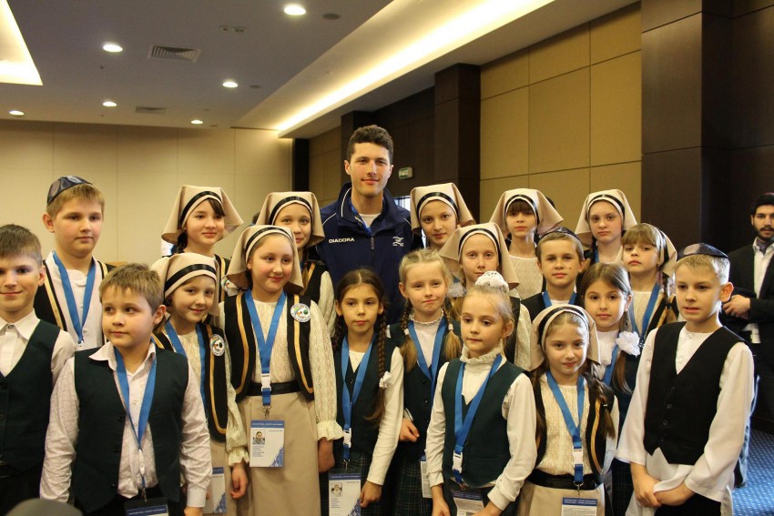 9 февраля в Олимпийской деревне в конференц-зале отеля «Азимут» состоялась встреча спортсменов олимпийской сборной Израиля с представителями еврейских общин России. На встрече присутствовал главный раввин России Берп Лазар (от ФЕОР), сотрудники посольства Израиля в России, а также педагоги, родители и учащиеся гимназии №44 города Сочи, представлявшей Израиль в рамках олимпийской программы «Одна школа – одна страна». По русскому обычаю участники встречи были встречены хлебом и солью, главному раввину была подарена книга об Израиле и его культуре, написанная учащимися гимназии. Всем гостям юные художники Художественной школы гимназии подарили картины с видами Сочи.