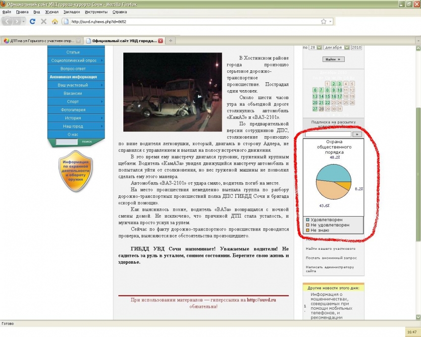 Криминальные новости на сайте УВД Сочи появляются с большим опозданием. Жители давно обсудили происшествие в интернете, выяснили обстоятельства, а информация полиции только опубликовалась на официальном сайте. Читать полицейские сводки невозможно, протокольный язык отбивает желание интересоваться содержимым криминальной хроники, качество фото и видео позволяет задумываться о профессионализме сотрудников пресс-центра.