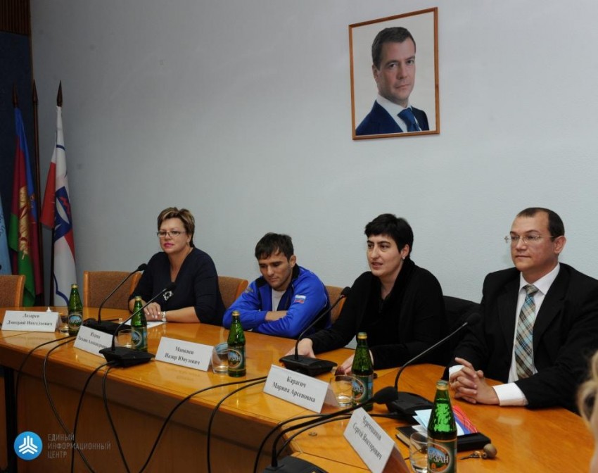 В Сочинском государственном университете состоялась встреча студентов и волонтеров Центра подготовки волонтеров «Forward» с Олимпийскими чемпионом 2008 г., Чемпионом России 2008 г. по греко-римской борьбе, заслуженным мастером спорта — Назиром Манкиевым.