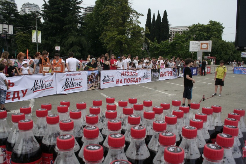 «Всекубанский турнир по стритболу на кубок Губернатора Краснодарского края», точнее — его Сочинский этап, состоялся сегодня в Сочи. На самой популярной спортивной площадке последних лет — площади перед администрацией Сочи — разметили 8 игровых площадок. Плюс — сцена, вдобавок — звук. При поддержке производителя одного из видов «черного лимонада» получился очередной физкультурно-пиарно-политический проект. При чем здесь Губернатор — не совсем было понятно, т.к. призы и подарки победителям вручала «Кока-Кола»… Хотя, по большому счету, для наших детишек — дополнительный спортивный праздник. И на том спасибо.