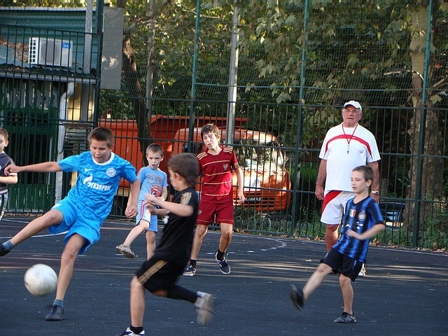 Площадка на улице Труда тоже не пустует. Футбол, стритбол здесь излюбленные виды спорта. Женщина инструктор наотрез отказалась сниматься на камеру. Пришлось узнать мнение детей занимающихся под ее руководством.