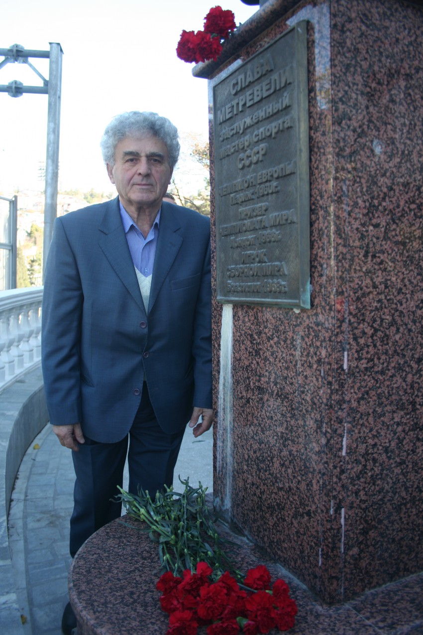 Отдельная тема разговора — отношение руководства Сочи к памяти своего легендарного земляка. Памятник Славе Метревели, выполненный Зурабом Церетели и торжественно открытый несколько лет назад, в настоящее время вырван с подножьем из земли и перенесен под окна ближайшего кафе. Не смотря на многочисленные письменные обращения инициативной группы сочинцев в мэрию города о принятии его на баланс и нормальной установки, результатов не дали. На снимке: Георгий Гвазава — руководитель группы неравнодушных к исторической памяти сочинцев.