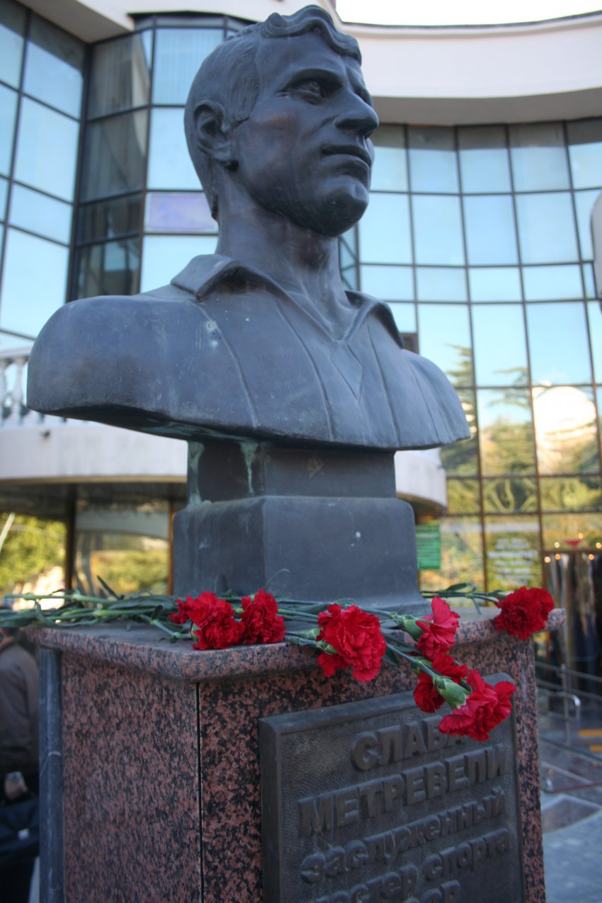 1. Почему памятник Метревели, как нагробный? Нельзя ли заказать другой, не такой кладбищенский. Например, он с мячом.