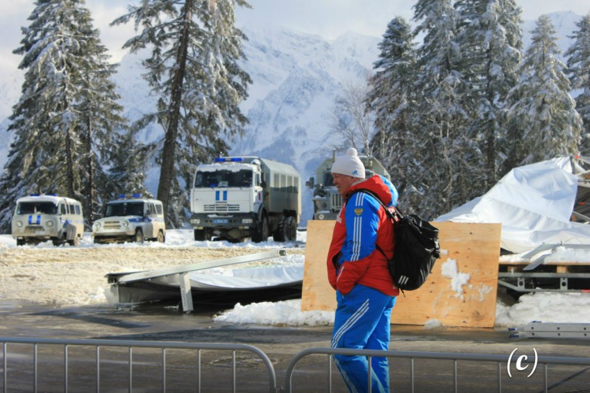 Я в том году не смогла по время тестовых на биталонном стадионе побывать. Но те, кто попал, рассказывали, что на снегоходах до места довозили.