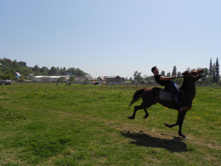 Это не скачки были. Это был… сейчас сформулирую по впечатлениям… эээ… заезд любителей на далеких от чистокровности лошадях, которые до этого либо в прокате возили шагом публику, либо мотались где-то по горам, причем судя по амуниции и экипировке всадников, не говоря уже о стиле верховой езды, пацаны просто решили себя показать, прокатиться с ветерком — одели батники, красные мокасы — ну, как на прогулку…