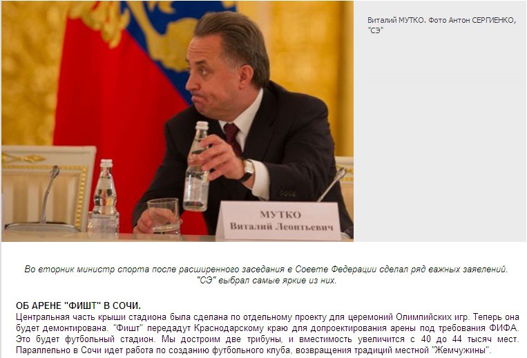 Вот так в одну кучу свалили „Жемчучину“, ФК „Сочи“, „Кубань“, которая якобы переедет в Сочи и простаивающий до 2017 года „Фишт“…
