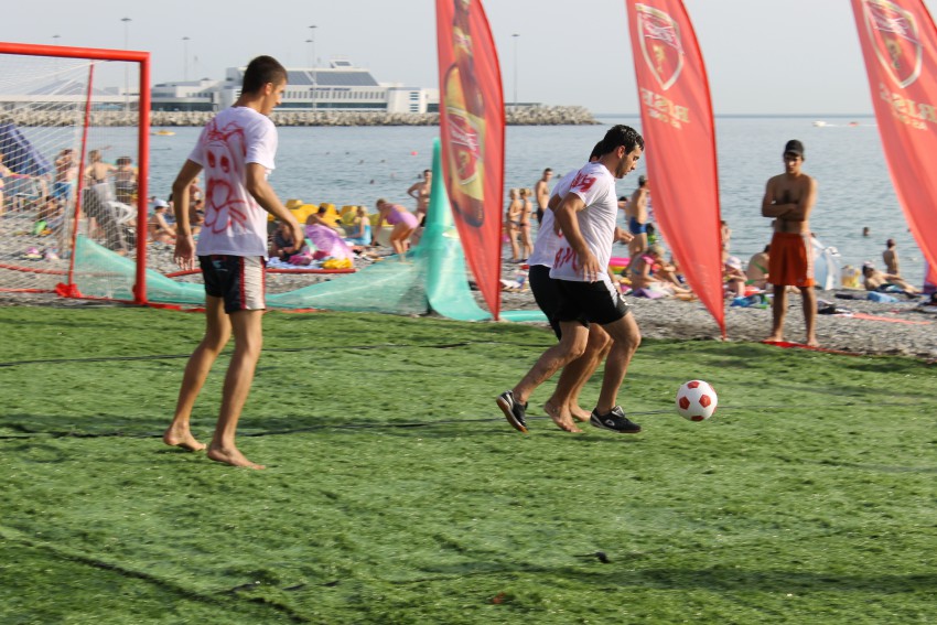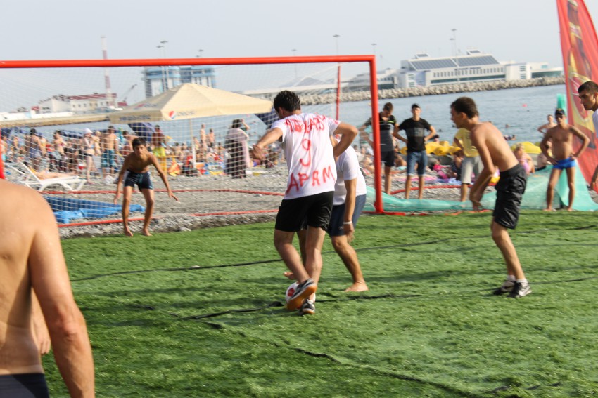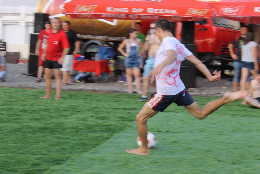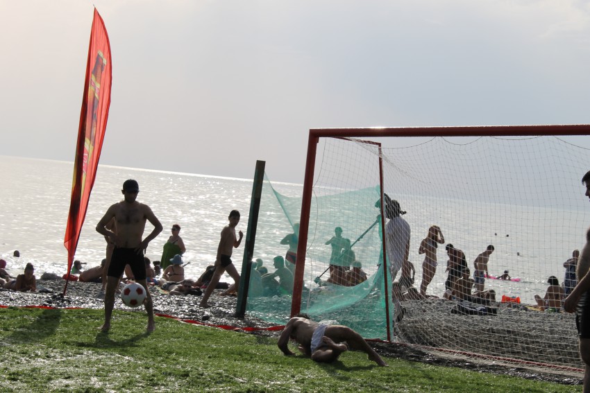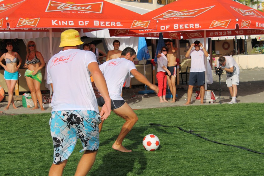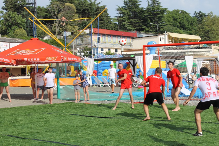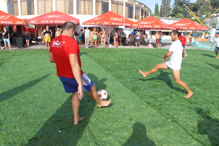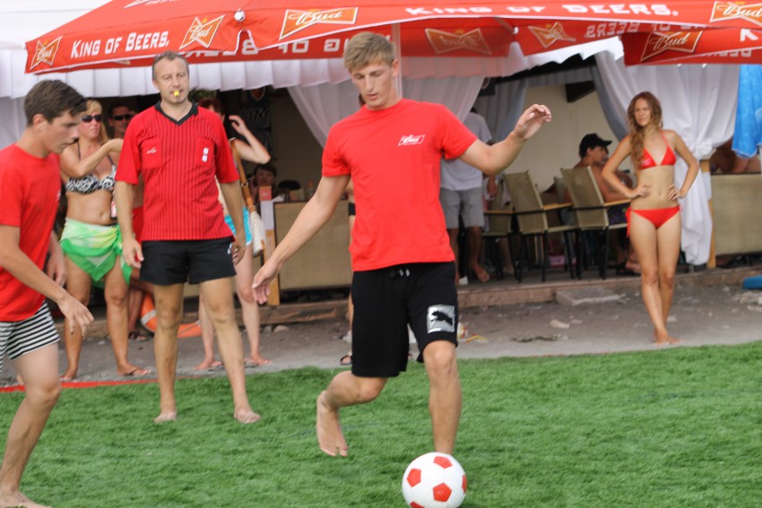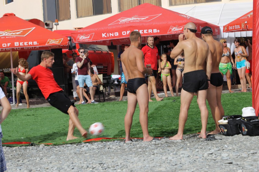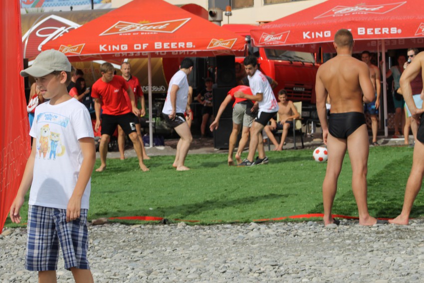 На пляже «Ривьера» 12 июля стартовал турнир пляжного футбола от компании «BUD». Состоялось шесть матчей. Награждали ящиком пива компании выигравшую команду каждого матча. Игроки и болельщики футбола получили истинное удовольствие. Выпив пива, остужали страсти купанием в море. Такое бывает только в городе Сочи!!! По окончании дня турнира болельщики играли до наступления темноты.