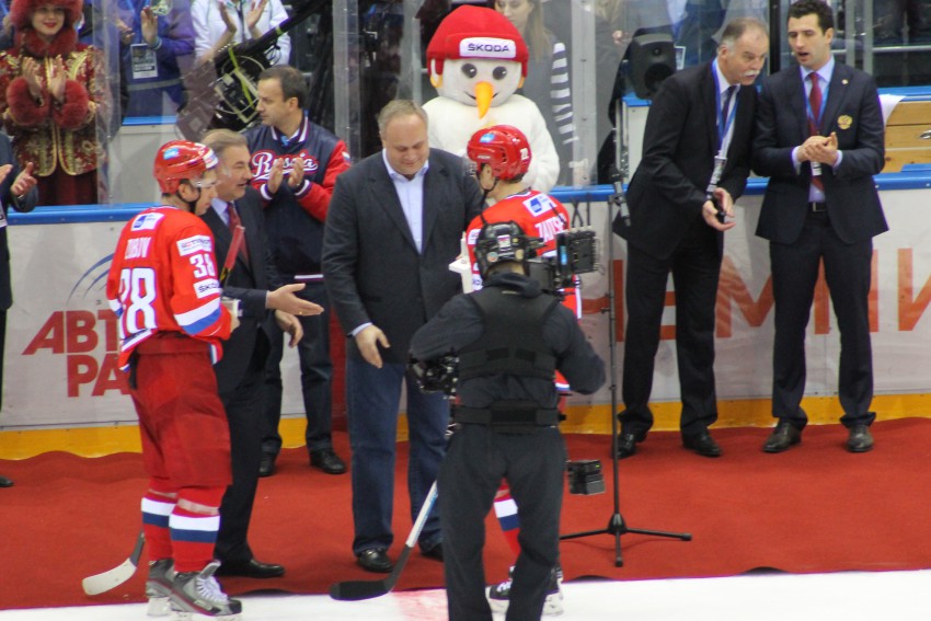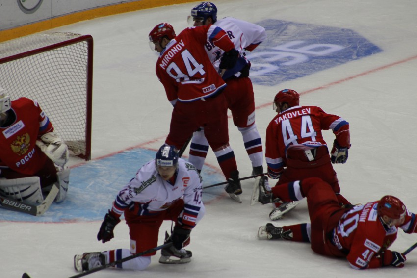 На матче сборных команд России и Чехии присутствовало самое большое за всю историю ЛД«Большой» количество зрителей--10450-ть. Праздник хоккея сопровождался песнями, музыкой, бесконечными звуками фанфар, в хорошем настроении зрители, большинство одетых в самую разнообразную атрибутику хоккея, флага России и Олимпийских игр 2014 года проходивших и в ледовом дворце «Большой». Этот матч необходимо было выиграть лишь для престижа, соперники по очкам уже не могли потеснить команду россиян.