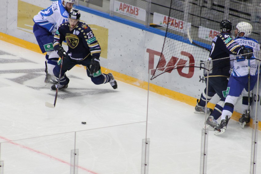Воспользовавшись численным преимуществом оштрафованного Кори Эммертона на тридцать второй минуте нижнекамцы открыли счёт, шайба снайперски пролетела между закрывшими вратаря игроками. Все болельщики словно по команде дружно подхватили-«Сочи!», «Сочи!», «Сочи!»… Нападающий Илья Крикунов под занавес второго периода снял напряжение ответным голом из выгодного положения сравняв счёт-1:1. Начав третий период в привычной скоростной манере и силовой борьбе сочинцы овладели преимуществом в игре, на сорок четвертой минуте леопард Кори Эммертон при передаче Павла Коледова ловко подставив клюшку попал в верхнюю перекладину ворот и забил гол.