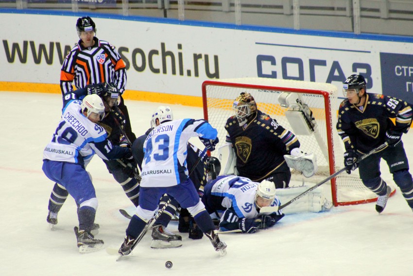 Выкладываясь в полную силу «леопарды» перевели игру в зону минчан не давая канадскому голкиперу опомнится. Почуяв неуверенность Джеффа Гласса любимиц публики Михаил Анисин при атаке ловко обвел упавшего под шайбу вратаря и отправил её в сетку, 2:1. Болельщики и фан-клуб ликовали «Сочи!»,«Сочи!», радуясь непримиримой игре до конца второго отрезка времени.