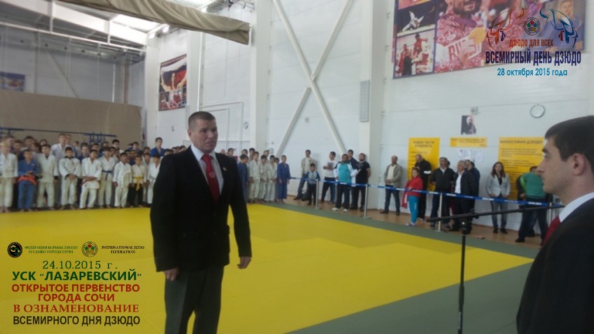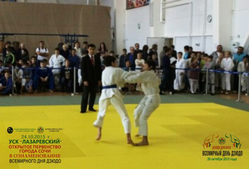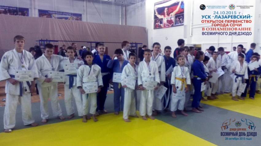 24 октября 2015 года в Универсальном спортивном комплексе «Лазаревский» состоялось Открытое первенство города Сочи по дзюдо среди юношей и девушек 2002-2003 годов рождения, в первенстве приняло участие более 150 дзюдоистов.