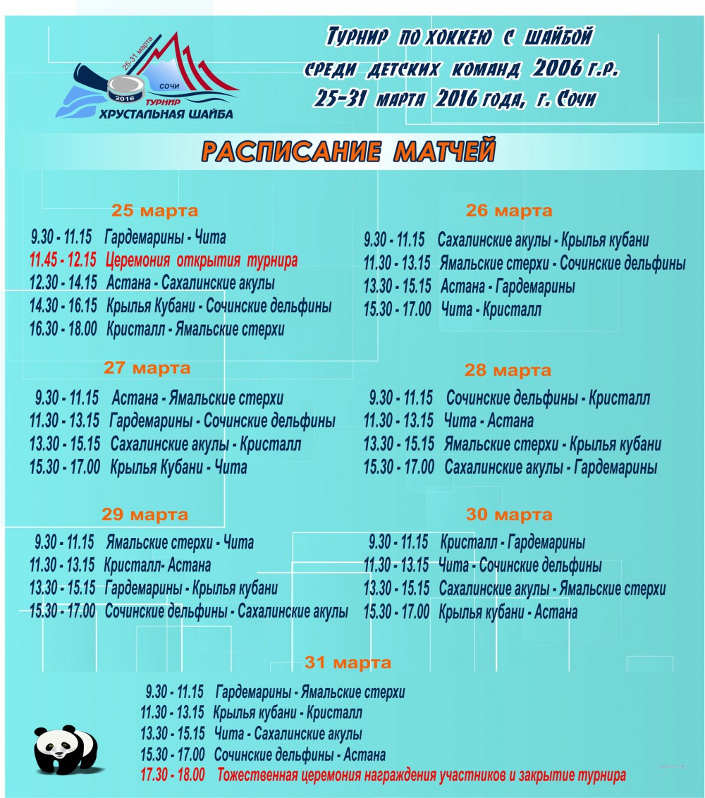 Детская хоккейная команда «СОЧИНСКИЕ ДЕЛЬФИНЫ» 2006 г. р., участвует в домашнем турнире «Хрустальная шайба 2016» который пройдет с 25 по 31 марта, место проведения ДС " БОЛЬШОЙ ". Приглашаем всех болельщиков и любителей хоккея!!!