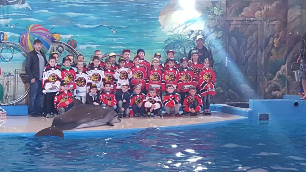 Первыми морскими обитателями, которые увидели юные хоккеисты, стали не дельфины. Акул, разных рыб, крабов и других моллюсков ребятам показали во время экскурсии, организованной новыми партнёрами — Большим сочинским дельфинарием парка «Ривьера». После знакомства с подводным миром ледовые защитники и нападающие узнали много нового о земных животных, посетив зоопарк«Рио». После познавательной зооэкскурсии ребят ждал сладкий стол. У одного из игроков команды визит к партнёрам совпал с днём рождения. 9-летие отметил Тимур Хвистиани. Руководство дельфинария подарили юному хоккеисту огромный торт в виде формы. И на этом подарки не закончились. По традиции, во время представления, дельфины пишут картины. Очередной пейзаж для именинника нарисовал — ставший символом команды «Сочинские дельфины» — Черноморский афалин Новик. Он же прокатил Тимура на лодке под аплодисменты зрителей. Новик и его друзья также продемонстрировали хоккеистам свою ловкость в прыжках в высоту, через кольцо и другие трюки. Дельфины зарядили ребят положительными эмоциями и таким образом, поддержали в спортивных начинаниях.