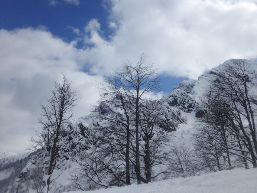 Если месяц была теплая погода (как в феврале этого года, к примеру) в том числе на верхах, «плюсы» и солнце, то после сильного первого снега существенно состояние склона ни при каких обстоятельствах не улучшится. Зато угроза схода лавин возрастет. Верхний слой выпавшего снега съезжает с основания. Для того чтобы сформировался нормальный слой для фрирайдового катания, нужно чтобы прохладная погода и снег «задержались» хотя бы на недельки две-три.