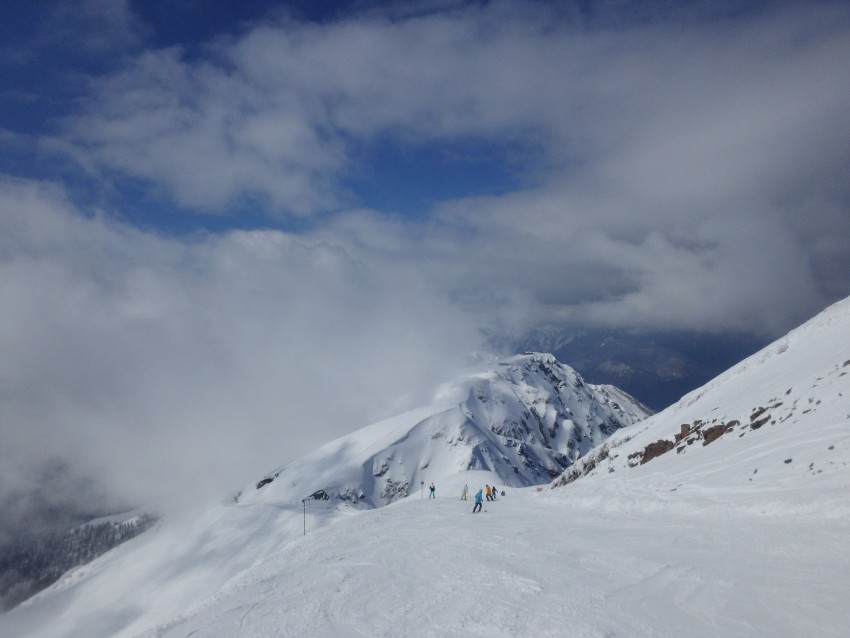 В общем Карусель для меня стала как бы посередине. А если говорить проще «ни то — ни се» . Опять же по цене – на Карусели почти как на Розе, а с условием того, что парковка на Волчьей скале (Роза стадион) «Розы Хутор» бесплатна, то удобнее было ехать на Розу. «Лаура» была отличным выбором тогда, когда туман был на уровне выше 1600. На Розе и на Карусели в такие дни верхи закрыты, и «Лаура» становилась вне конкуренции. Отличные черные и красные трассы + стоимость скипаса, отличная видимость и погода, отсутствие очередей, безветрие – у меня сомнений куда ехать не возникало. Жаль, что сезон там на красных и черных трассах де-факто заканчивается раньше. Намного раньше.