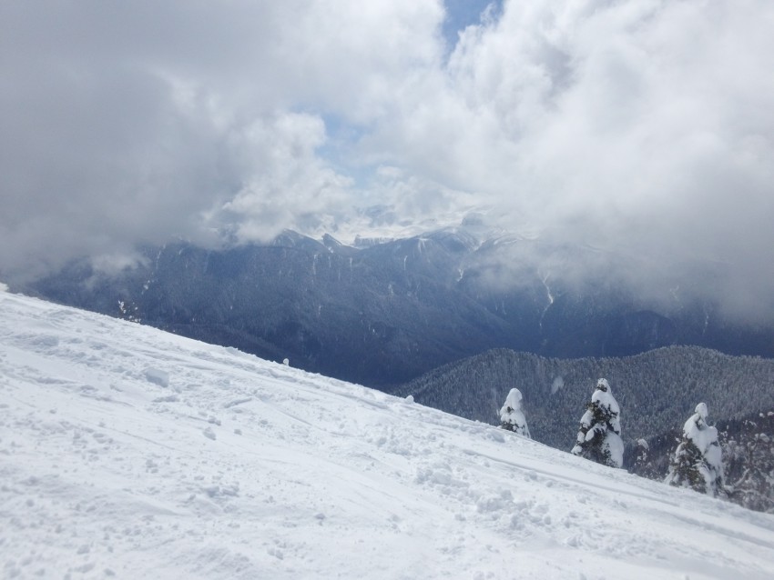 Во-первых: сайт sochi.camera. Спасибо создателям за этот ценный ресурс! Еще б поправить градусники (инфа о температуре то ли не меняется, то ли не работает просто) и информировать о скорости ветра на вершинах — было бы вообще супер. В основном при принятии решения опирался именно на мониторинг этого ресурса. Весной стало проще. Светало раньше, и на камерах уже было хорошо видно, как начинается день и что от него ждать. Во-вторых: сайты погоды snow-forecast и yr.no. Один минус «норвежцев» — что-то они нещадно врали о скорости ветра на вершинке. У них как-то чаще всего до 5 м/c было, а на деле бывало и 14 и 20. В этом плане snow-forecast был довольно точен. В общем, сравнив показатели этих двух сайтов, а так же свои ощущения можно было сделать какое-то более- менее точное предположение о погоде и состоянию склонов. «Свои ощущения» здесь не для красного словца. Именно опыт различных многолетних катаний, походов и прочих outdoor активностей + информация с указанных ресурсов позволяет сделать довольно приемлемый прогноз.