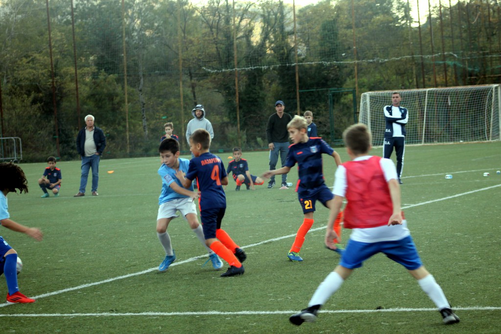 В матче школьников команда «Зенит» из Дагомыса в голубых майках выиграла 3:2 у сочинских школьников.В команде одна девочка, на втором фото слева.