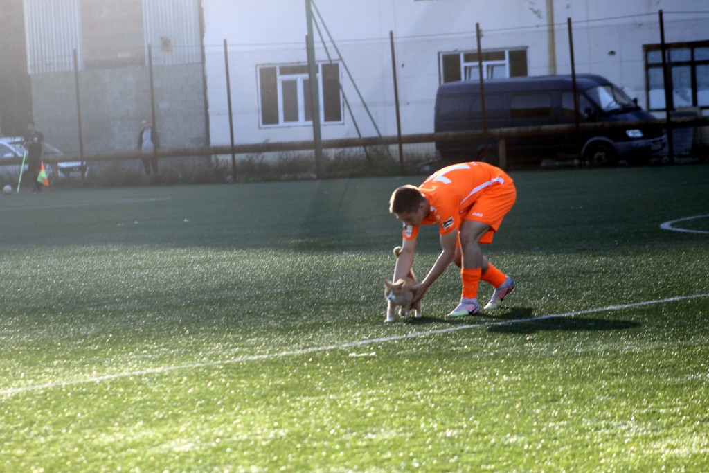 Сочинцы нашли свою игру с противником и выходили победителями во втором тайме практически из любых ситуаций. Армавирцы переместили игру на половину поля сочинцев почти до середины тайма. Сочинцы удачно выбивали мяч на половину поля армавирцев и контратаками создавали у их ворот опасные ситуации. Постепенно игра перешла на середину поля. Сочинцы стали раскованно действовать и все контратаки армавирцев не доходили до ворот сочинцев. Неожиданно на середину поля вышел кот… По словам комментатора на какой-то из игр на поле вышел… конь. Видимо армавирцев из-за оранжевой формы рыжий принял за свою стаю и решил познакомится, но его не поняли и вынесли с поля.