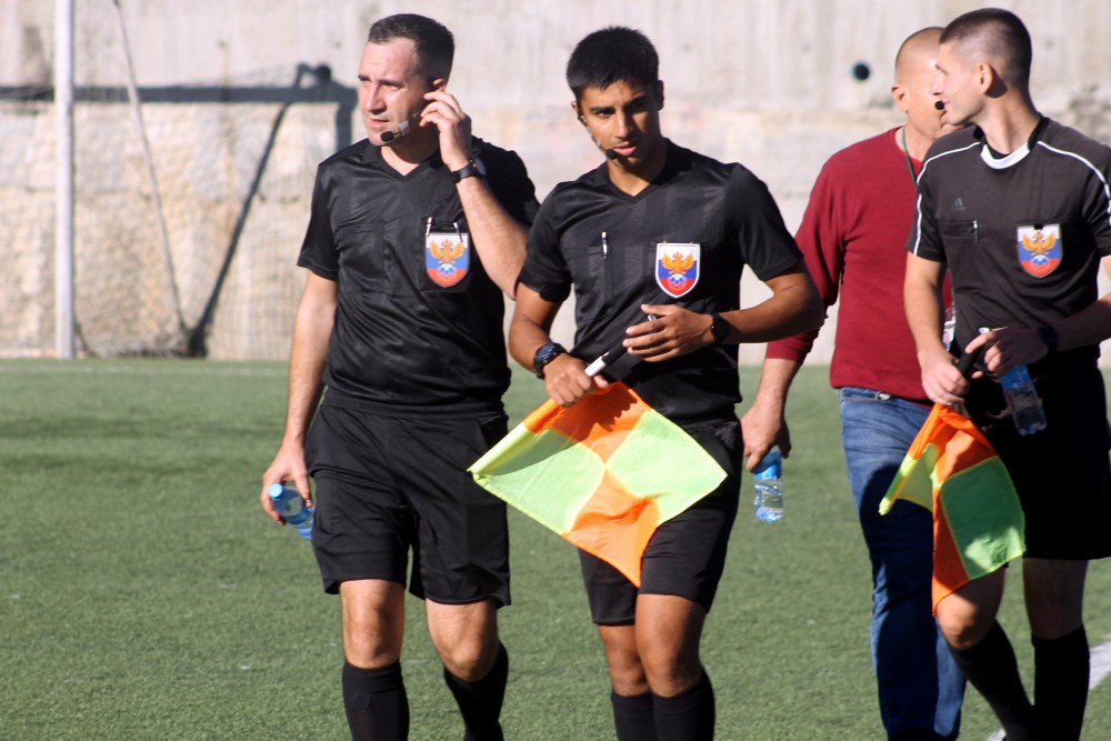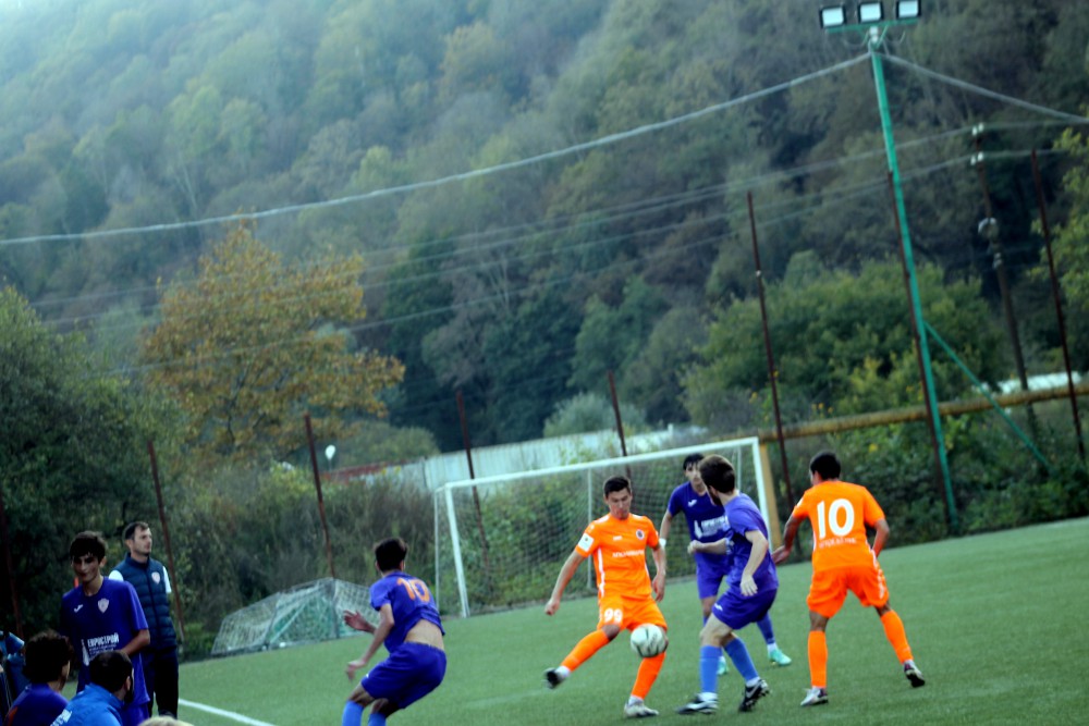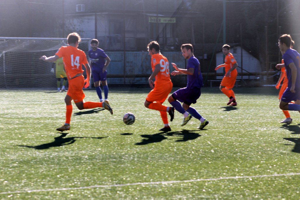 Первый таим игры с ФК «Армавир 2» прошёл в классической позиционной борьбе. Сочинцы в фиолетовой форме на большой скорости начали игру, но армавирцы грамотной защитой выровняли темп игры и борьба за мяч шла на равных. Жестко прессингуя обе команды поочерёдно создавали атаками острые моменты у ворот противника. Грамотная защита обеих команд не давала забить мяч. Появились фанаты сочинской команды обозначив себя дымом от фееров за сеткой другой стороны поля. Пришли родственники сочинских футболистов подовая иногда полиэтиленовые бутылки с водой своим игрокам в редкие паузы игры, когда, например, столкнулись три футболиста.