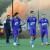 Во время перерыва тренер сочинской команды объяснял игрокам как надо дальше играть с противником.