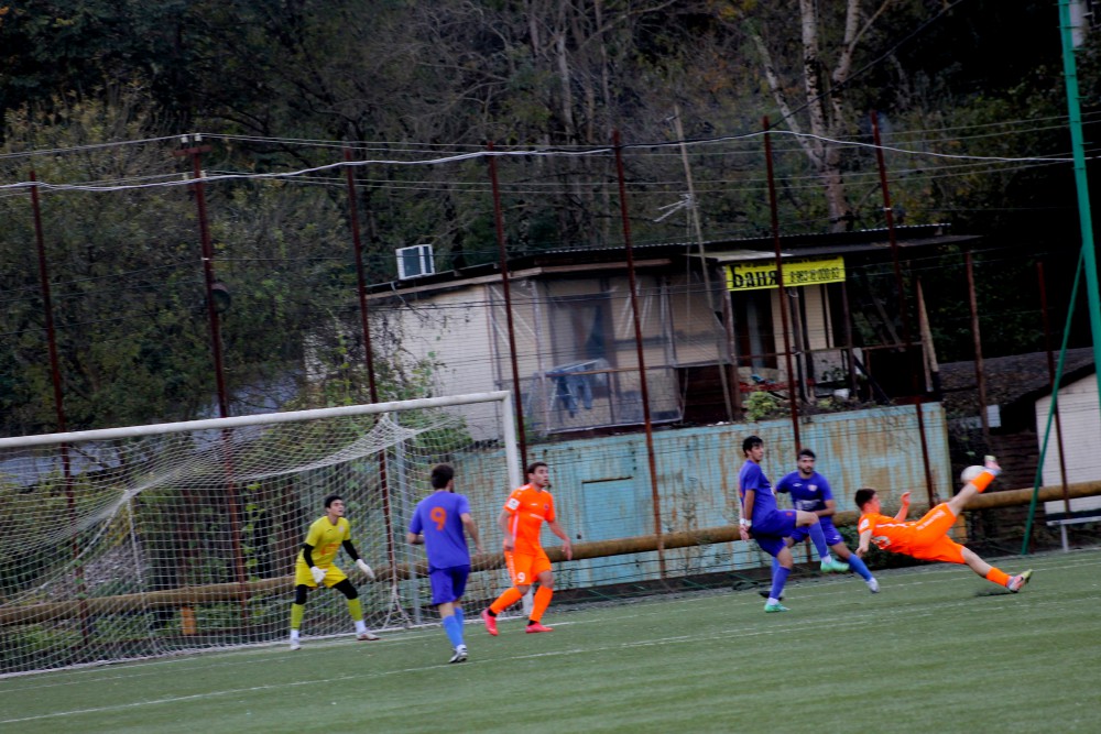 Время подходило к концу игры, сочинцы выстроили защиту у своих ворот, оставили свою часть поля стали чаще атаковать. Армавирцы любят атакующий футбол. В результате их атаки, от удара мяч от штанги рикошетом попал в другую штангу, но в ворота так и не попал, сочинцы его отбили. Габриолян столкнулся с игроком противника и после помощи врача и замены на игрока защиты Кегиян, покинул поле. Арбитр добавил пять минут к матчу. Противник ещё два раза попал в штагу, но раздался финальный свисток и матч закончен. Победа сочинцев, 1::0.