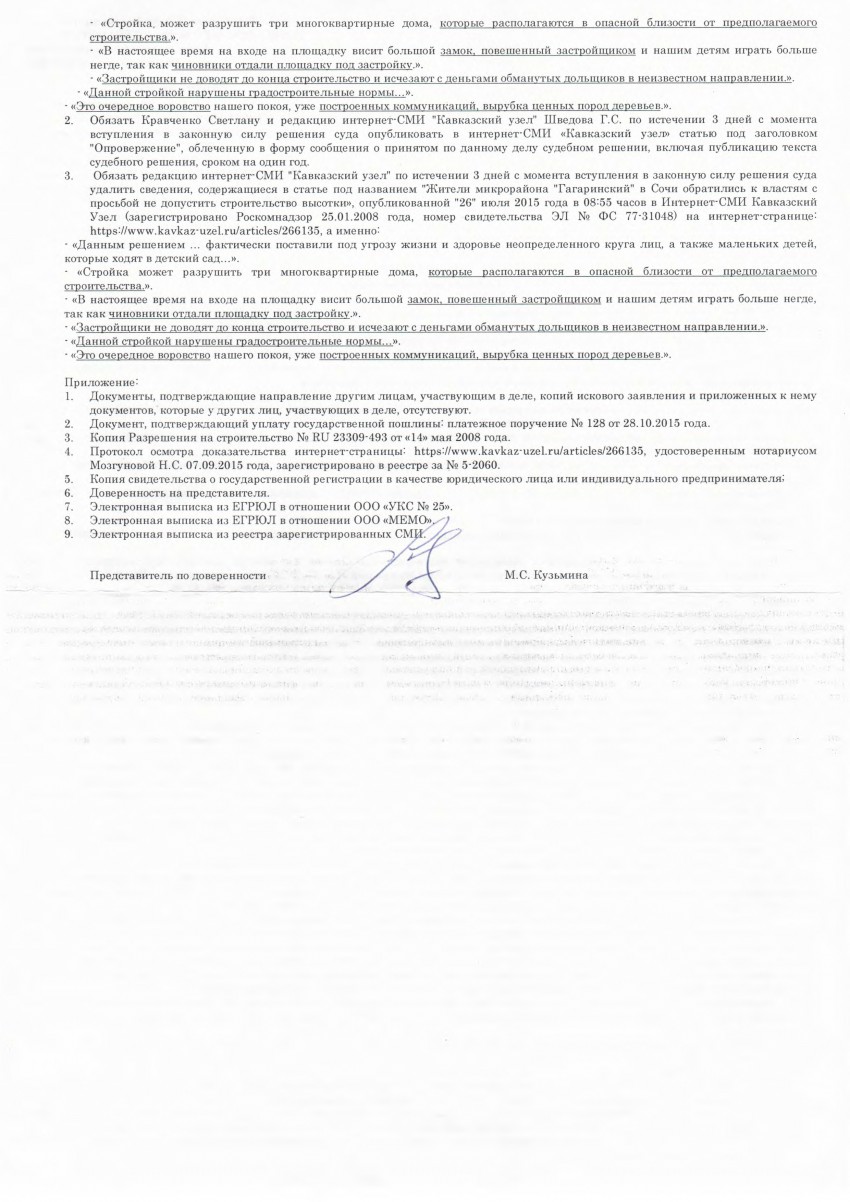 Вот к каким фразам из публикации на «Кавказском узле» от 26.07.2015 имеются претензии: