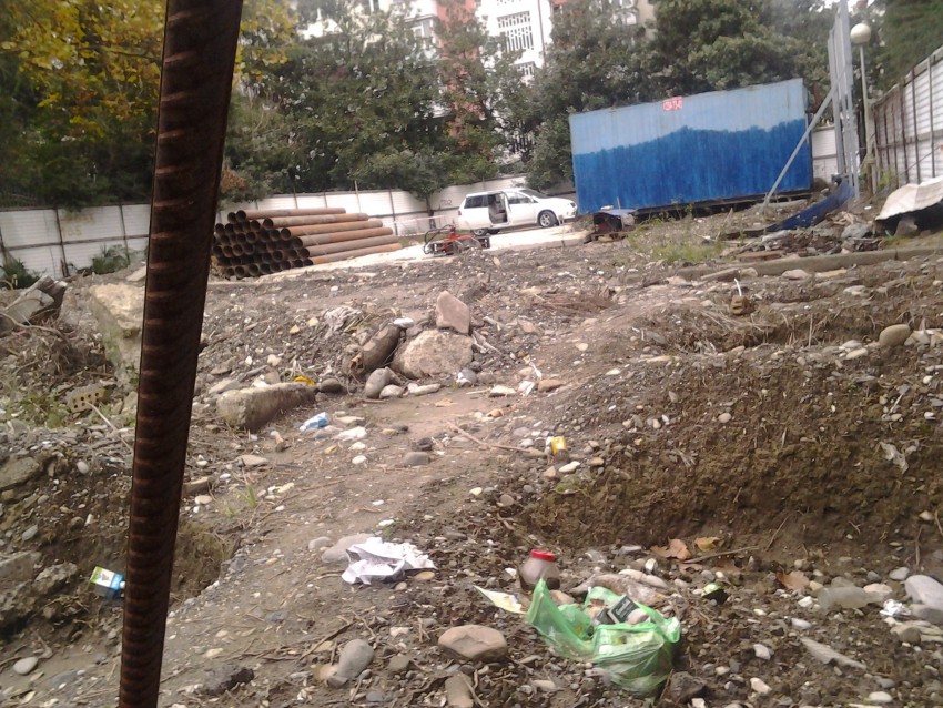 Фото со строительной площадки сделано сегодня. За забором видны постройки детского сада №47. Деловая репутация по санитарному состоянию стройплощадки тоже налицо.