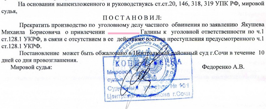 Комент Archto — постановление мирового судьи Федоренко А.В. судебного участка 101 Центрального района г. Сочи.