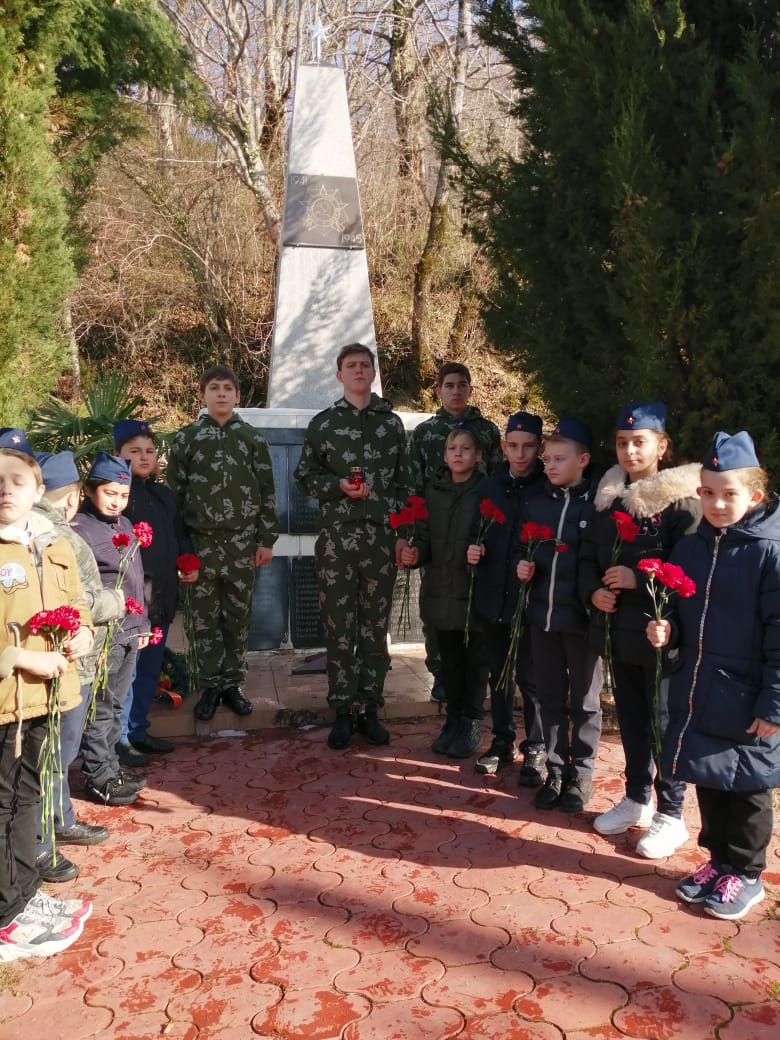 «28 января 2020 г. 2 «В» и 8 «Б» классы МОБУ СОШ № 57 г. Сочи совместно с офицерами запаса П.М. Лещенко и Т.М. Мусакаевым посетили музей истории школы№ 57 и села Прогресс. Гости рассказали ребятам о знамени Победы и мужестве советского народа в годы Великой Отечественной войны».