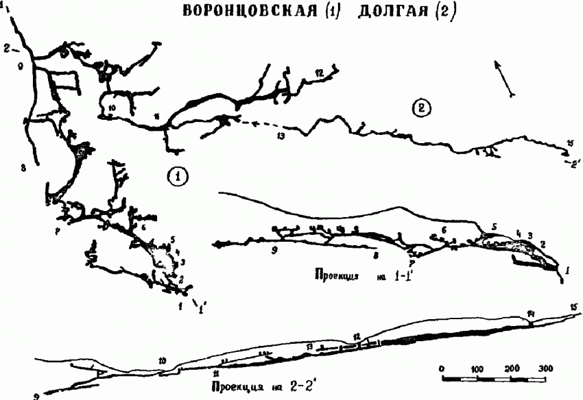 К примеру, на этой схеме видно, что «ходибельный» участок пещеры Долгая составляет метров 700