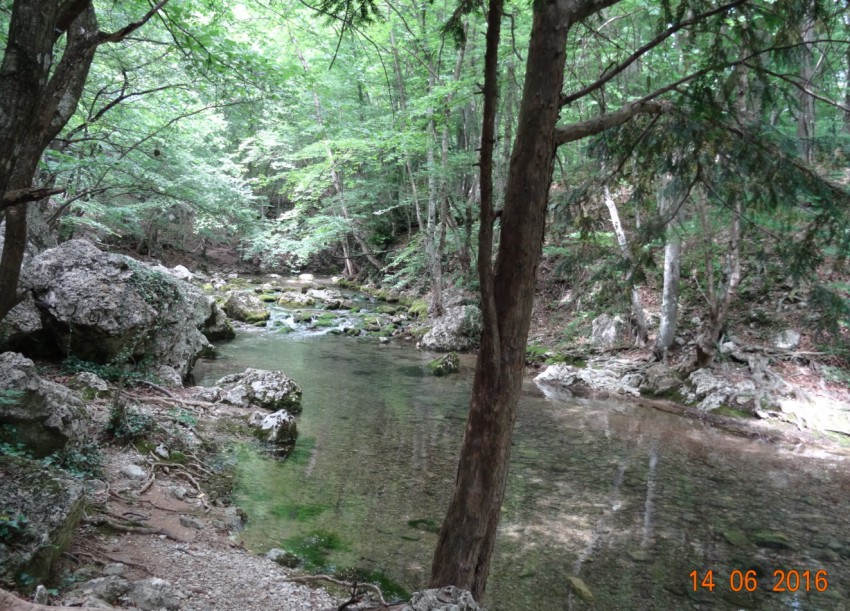 Потом мы переехали в Большой каньон Крыма, который находится в 5-ти км от села Соколиное Бахчисарайского района и является северо-восточной границей Ай-Петринского массива. Это огромная трещина, образовавшаяся вследствие активных тектонических перемещений земных блоков. В самых узких местах ширина каньона не превышает 3 – 5 метров, а глубина ущелья достигает 320 м, длина более 3-х км.