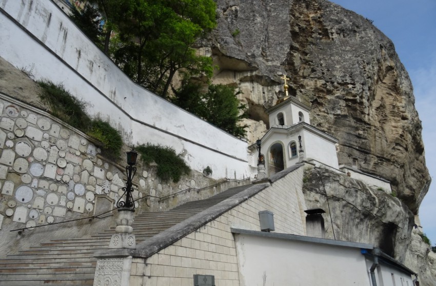 Начало пешеходного маршрута в Успенском монастыре, расположенном в живописном ущелье Марьян-Дере, что в переводе с татарского означает «ущелье Марии».