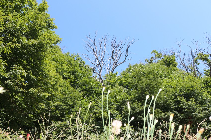 Вот такое чудесное дерево с кроной из облаков на фоне буйной зелени.