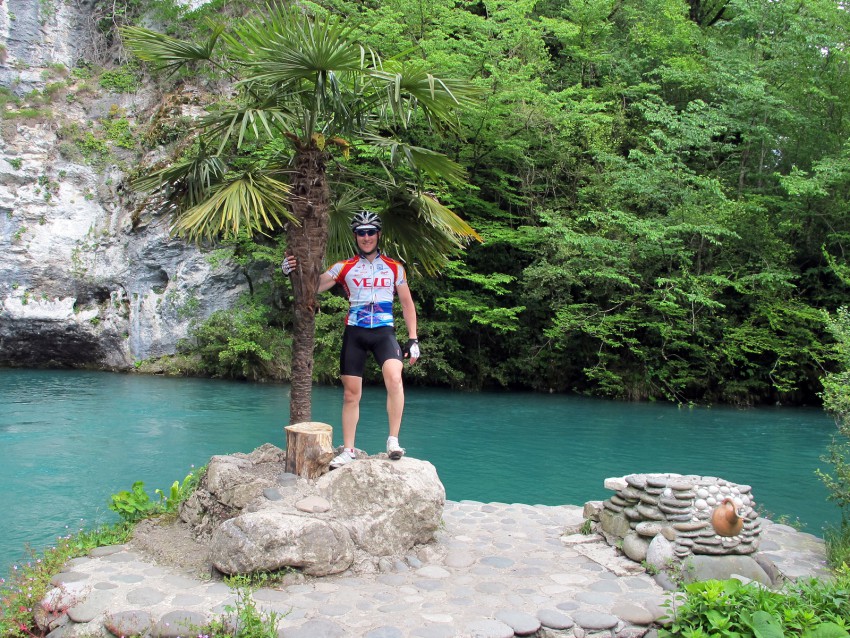Доехал до пансионата «Лазурный берег», что в Гагре. Последние пару лет останавливаемся там в апреле с друзьями-велосипедистами, меня уже знают.