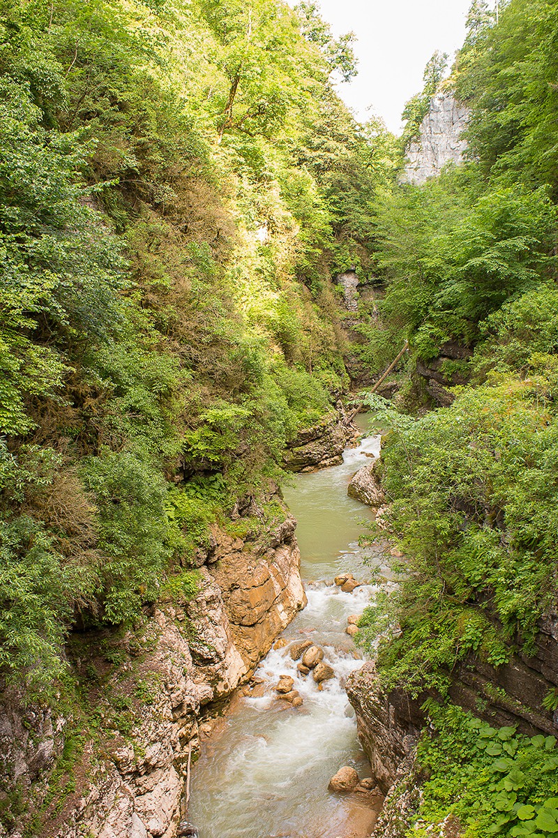 Получив пропуска у шлагбаума Заповедника в Лаго-Наки, группа направляется к подножию горы Оштен, преодолевая небольшие подъемы и спуски. Добравший до Инструкторской щели устраиваем привал и пополняем запасы воды. После непродолжительного отдыха начинаем подъем в седловину горы Абадзеш. Буквально через 40 минут несложного подъема достигаем Лагонакского нагорья. По всему хребту идет отличная тропа, ехать по ней одно удовольствие. Открываются виды на ледники и заснеженные вершины. Спускаемся в урочище Малый Мурзикал к истокам реки Молочка, откуда набираем около 300 м. по грунтовой дороге и становимся на ночлег. Всё бивуачное снаряжение (палатки, спальники, посуду, питание) к месту стоянки подвозит УАЗ. Так что при себе минимум необходимого. Ночевка в очень красивом месте с видом на долину реки Цица и Цицинский каньон. Устанавливаем палаточный лагерь, ужинаем и отдыхаем. Завтра предстоит интереснейший спуск! Утром завтракаем, собираем лагерь и начинаем спускаться в Гуамку. Сначала дорога идет по альпийским лугам. Здесь каменистые спуски чередуются с небольшими подъемами, но как только дорога заходит в лес начинаются грунтовые участки, на которых бывает сыро. После границы леса спуск становится более крутым, встречаются выходы плит и каменные ступеньки. Но на небольшой скорости преодолеть его может любой райдер. Выехав к памятнику партизанскому отряду, устраиваем перекус и пополняем запас воды. Ехать осталось немного. По пути в Гуамку заезжаем в Мезмай, на несколько смотровых площадок, с которых открываются виды на Гуамское ущелье. Выехав в хутор Гуамка, ужинаем и домой.