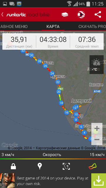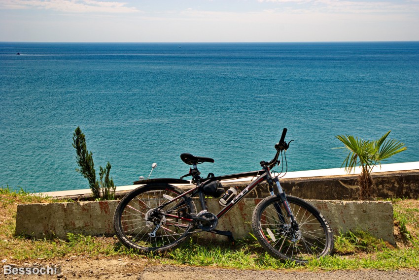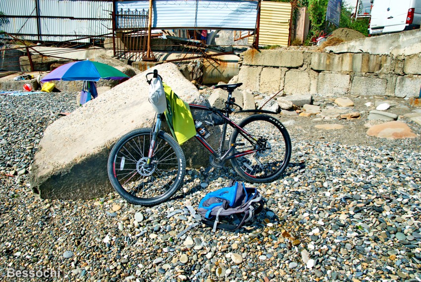Ну и конечная точка маршрута — Мацеста, проехал 36 километров и с удовольствием делаю последний привал, что бы окунуться в морской водичке.