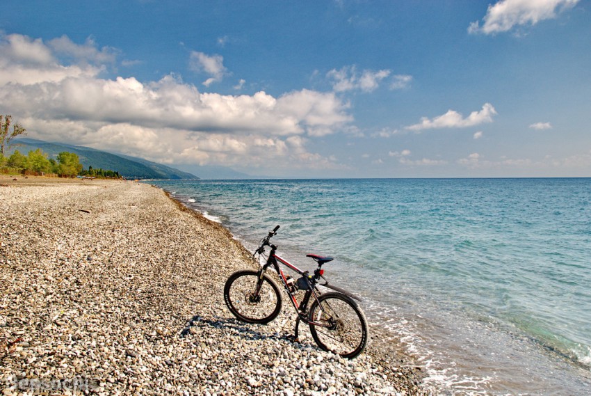 Остановка на море, вода кристально чистая, так и хочется искупаться.