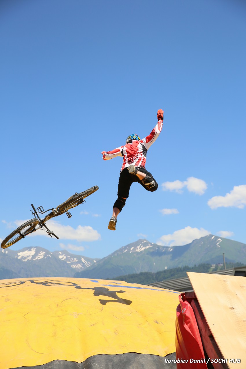 В Красной Поляна на курорте «Горки Город» прошел MTB Gorky Gorod Downhill cup 2016, Вашему вниманию 17 (+50) фото с 3го заключительного дня соревнований, и в кадре знаменательный заезд — мегалавина с одновременным стартом около 100 участников с отметки 2200м над уровнем моря. А также виртуозные прыжки в подушку для всех желающих.