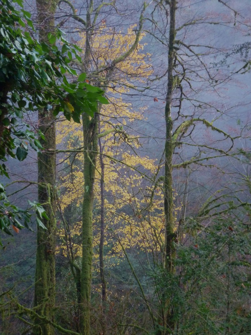 пьём травяной чай… с мёдом и сушёной хурмой… наслаждаемся зимним солнечным лесом и наблюдаем чудесные метаморфозы тумана между деревьями… солнышко к закату… пора уходить.