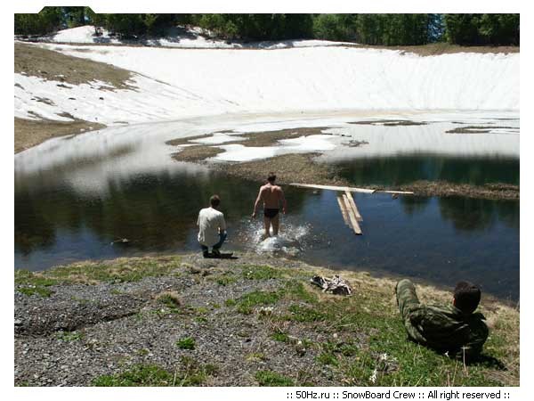 Дорога была сухая, только на самом верху, не доезжая до озера несколько метров начинается снег.