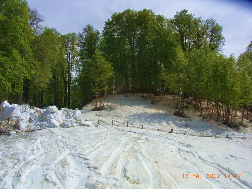 Видно немножко Фишт ( 2 раза посещаемый летом) Видно на нём ещё даже не весна.