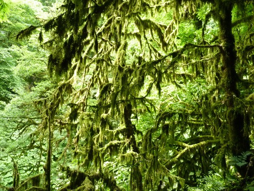 Через живописный лес с папоротниками и мхами на деревьях