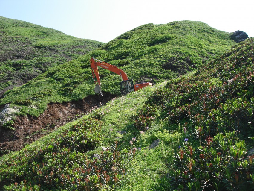 Летом 2011г. Третий цирк г. АибгаХодили на Чёрную Пирамиду с «Карусели». Экскаваторы, разрывающие в альпийских лугах заросли рододендрона, сильное зрелище. Больше не пойдём туда никогда. На лыжах катаемся давно, но лучше бы без лыж как-нибудь, чем видеть такое.