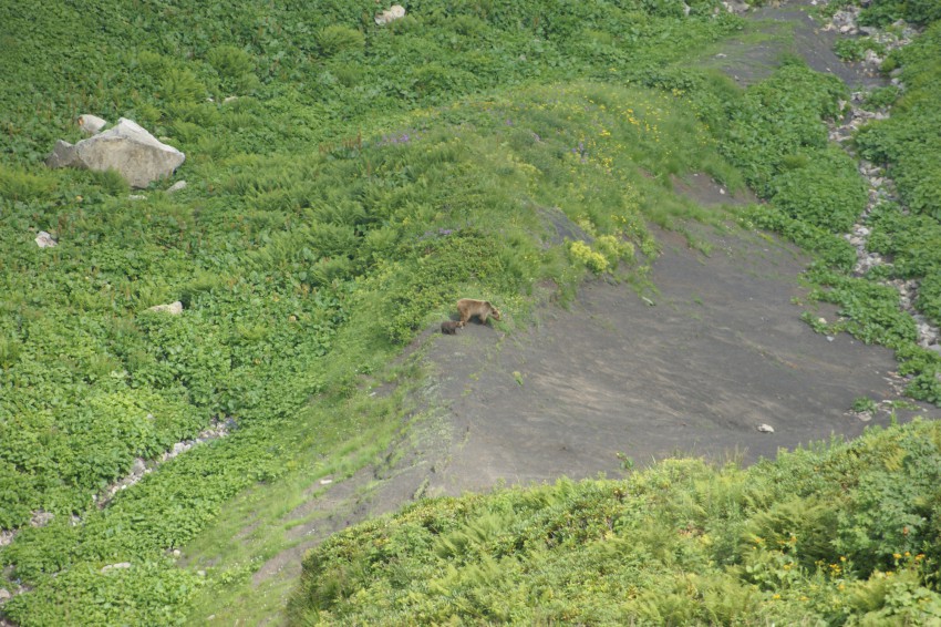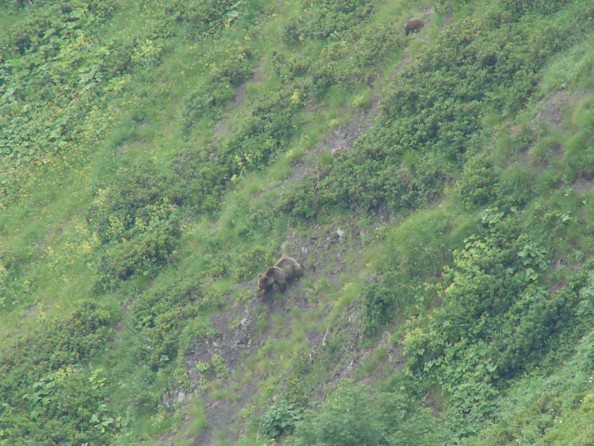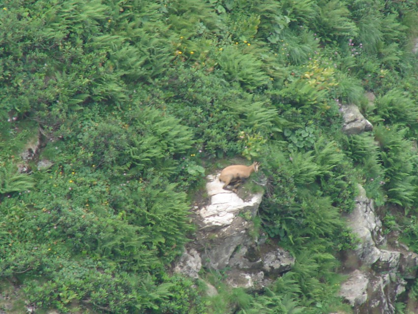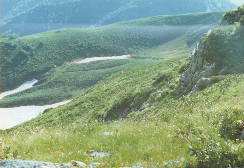 а возврощались по хребту к г. Фишт (на белореченский перевал) так вот на обратном пути чем ближе к белореченскому перевалу серн меньше и намного дальше (было только слышно ихний специфический свист и не видно) а на перешейке между г. Кут и г. Сахарная есть живописная поляна, родник. так там следы вертолёта россыпи автоматных гильз (как на стрельбище) мусор от многократных пикников